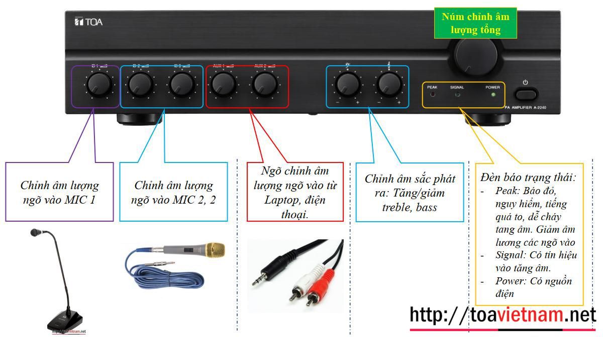 Tăng âm liền mixer công suất 240W: TOA A-2240